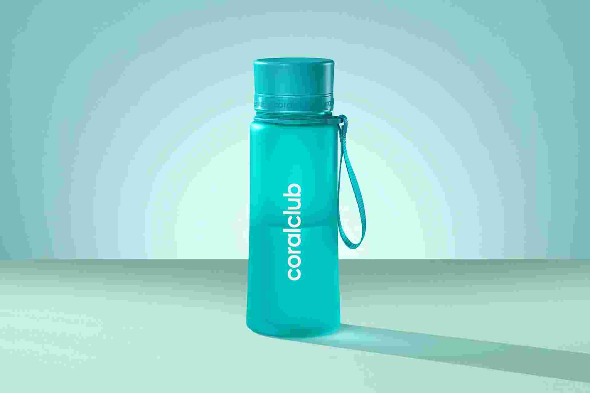 Міцна, екологічна та легка пляшка Coral Club чудово підійде для поїздок, прогулянок або занять спортом.