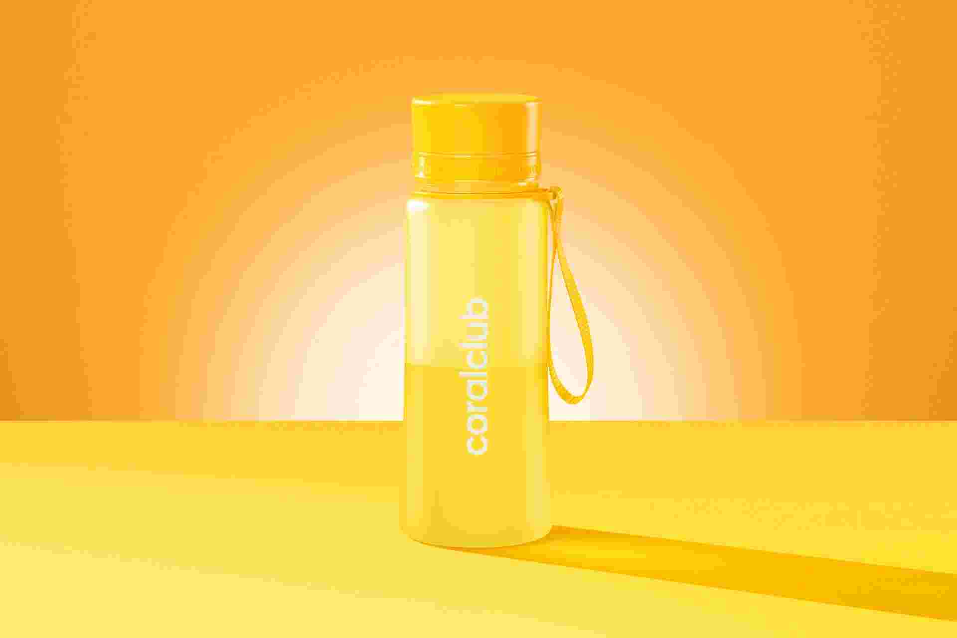 Міцна, екологічна та легка пляшка Coral Club чудово підійде для поїздок, прогулянок або занять спортом.